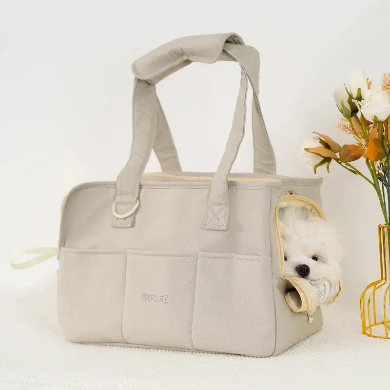 Le sac est réalisé en coton doux, une matière agréable au toucher qui respecte la peau et le pelage de votre chien. Ce textile offre une bonne respirabilité, ce qui permet une utilisation en toute saison, sans sensation d’étouffement pour votre compagnon. L’intérieur est doublé avec un coussin et un matelas, qui créent une surface accueillante et confortable pour qu’il se repose tranquillement. La plaque rigide située au fond du sac soutient le poids de l’animal et évite que le fond ne se déforme, ce qui apporte un sentiment de sécurité supplémentaire. Les couleurs beige et gris offrent une esthétique sobre et harmonieuse, idéale pour les maîtres recherchant un accessoire discret mais soigné. L’ensemble reste léger, ce qui permet de porter facilement le sac tout en conservant une sensation de stabilité et de confort pour le chien.